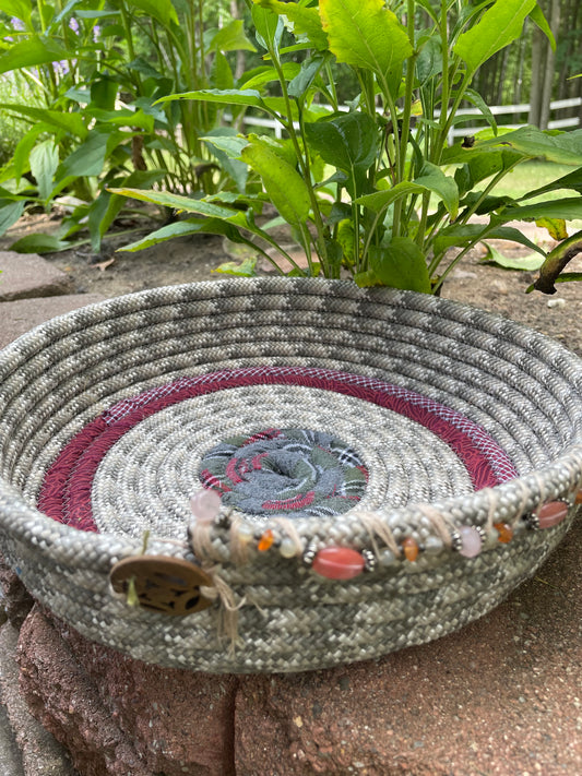 Grey and Burgundy Rope basket/tray