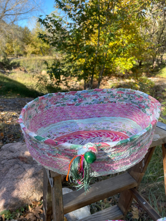 Sold outBurgundy gold rope basket/bowl