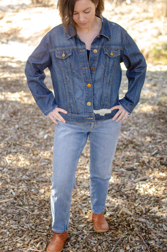 Denim and vintage lace cropped jacket